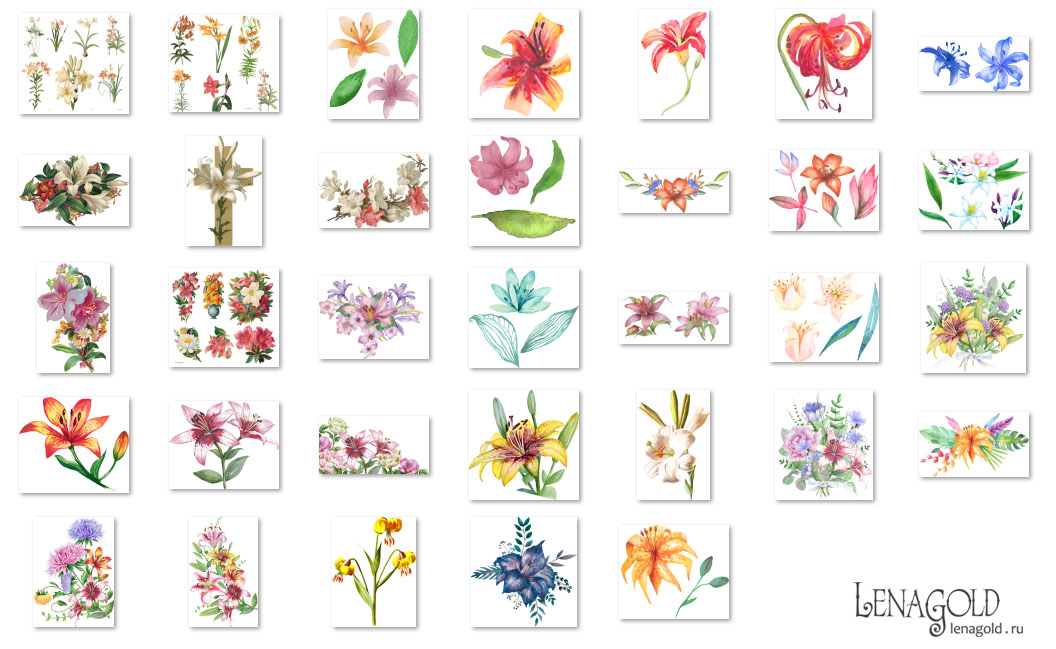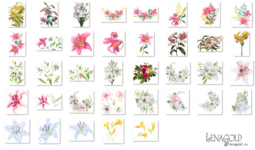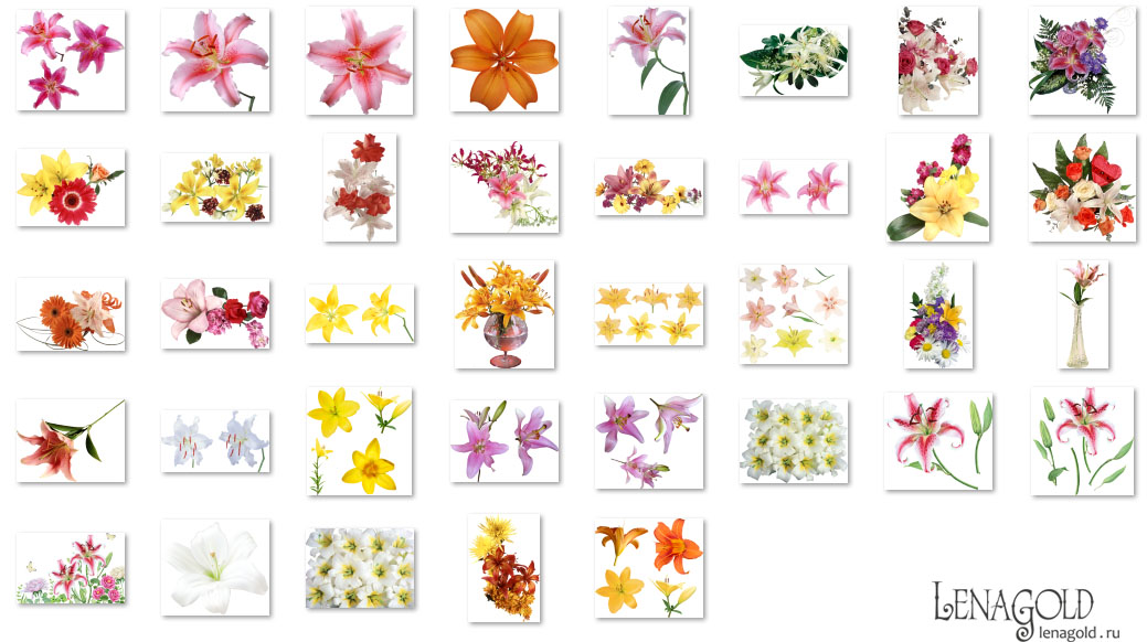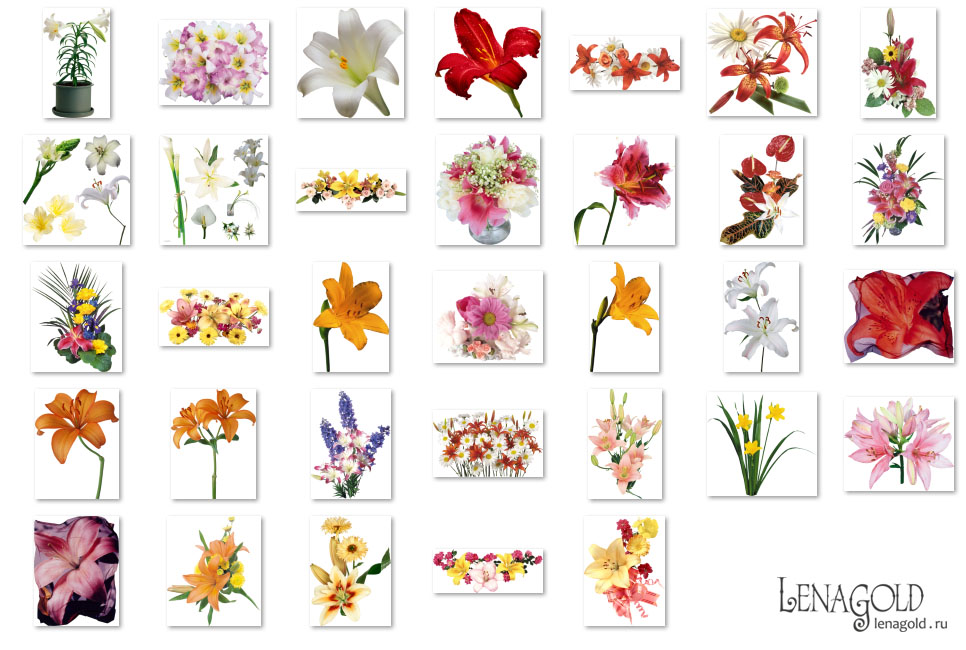 Лилии - 4 Колличество файлов - 33 Формат - PNG превью Скачать архив - 341 Mb |
