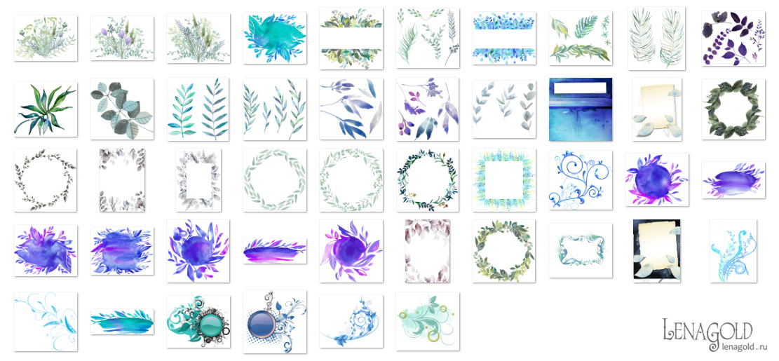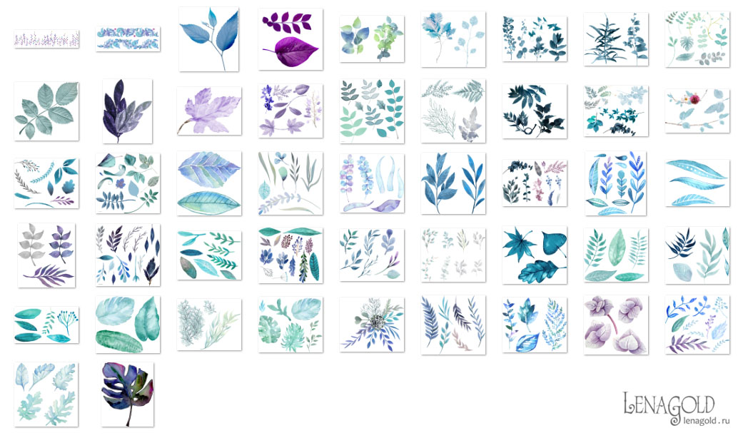 Синие и фиолетовые листья - 4 Количество файлов - 40 Формат - PNG превью Скачать архив - 346 Mb |
