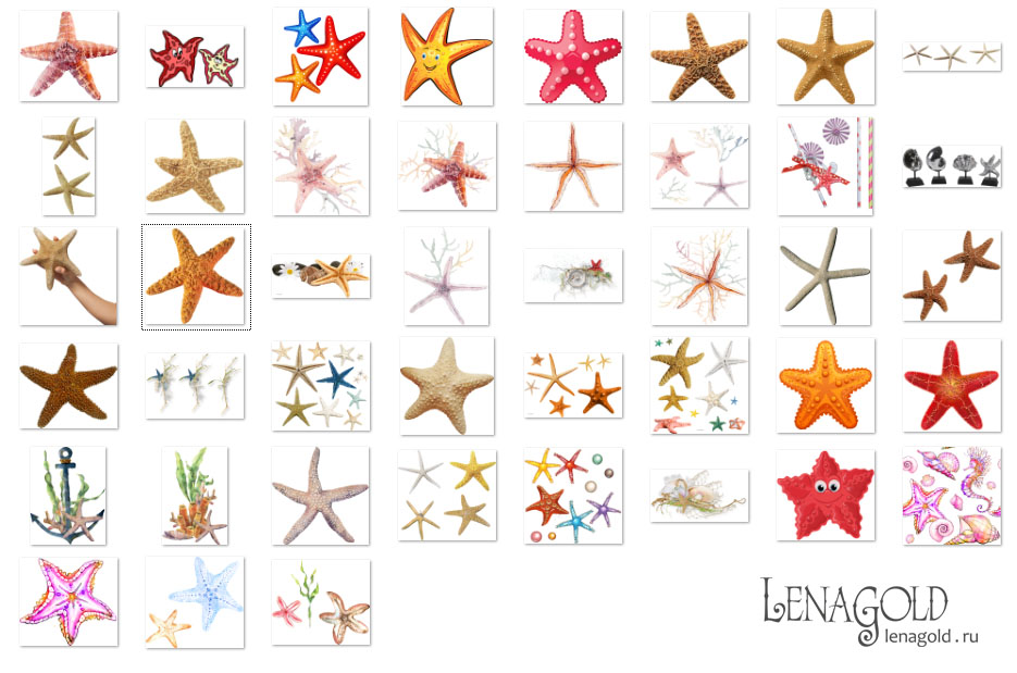 Морские звезды Количество файлов - 43 Формат - PNG и GIF превью Скачать архив - 243 Mb |