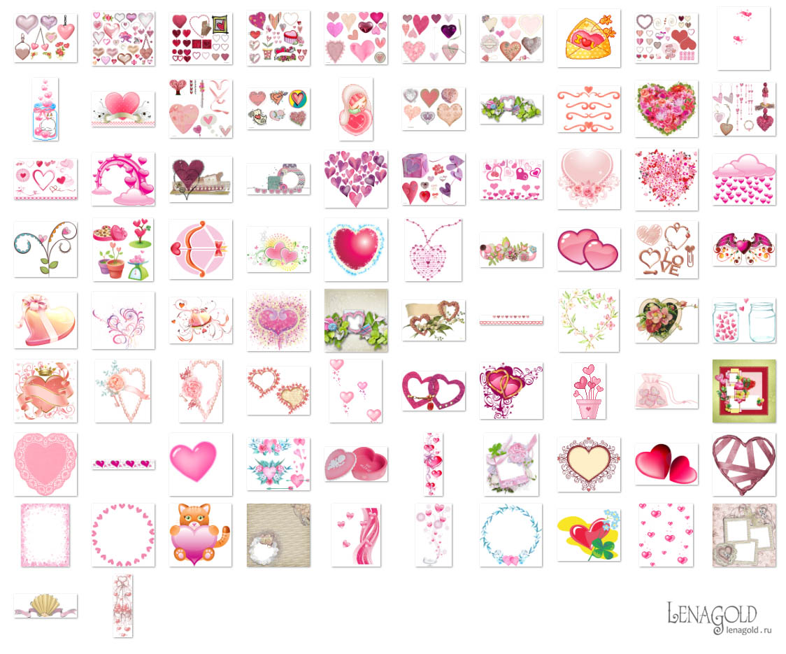 Розовые сердечки - 3 Колличество файлов - 30 Формат - PNG и GIF превью Скачать архив - 272 Mb |
