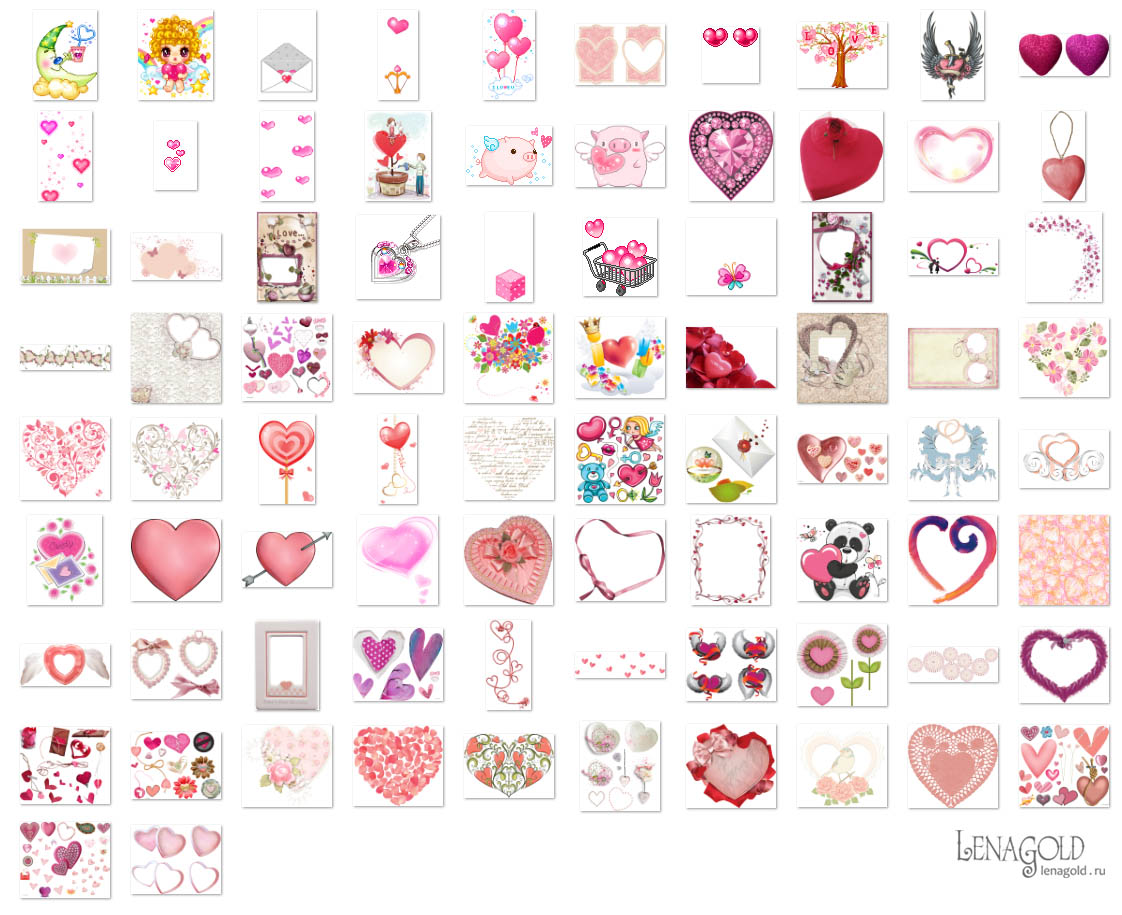 Розовые сердечки - 1 Колличество файлов - 82 Формат - PNG и GIF превью Скачать архив - 305 Mb |