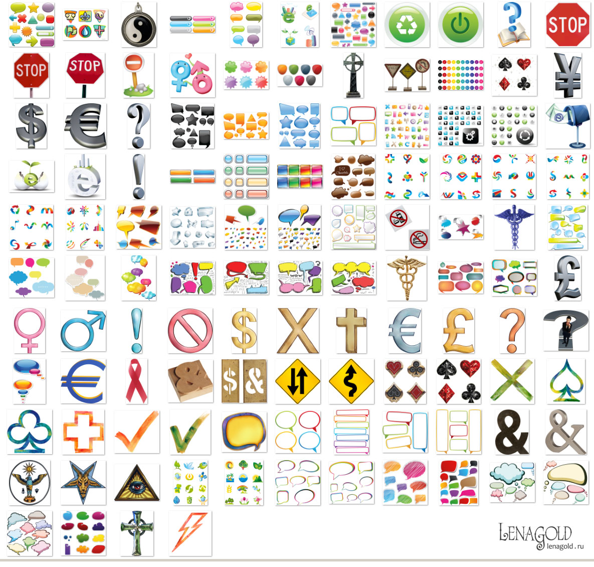 Знаки, символы - 1 Колличество файлов - 114 Формат - PNG превью Скачать архив - 288 Mb |