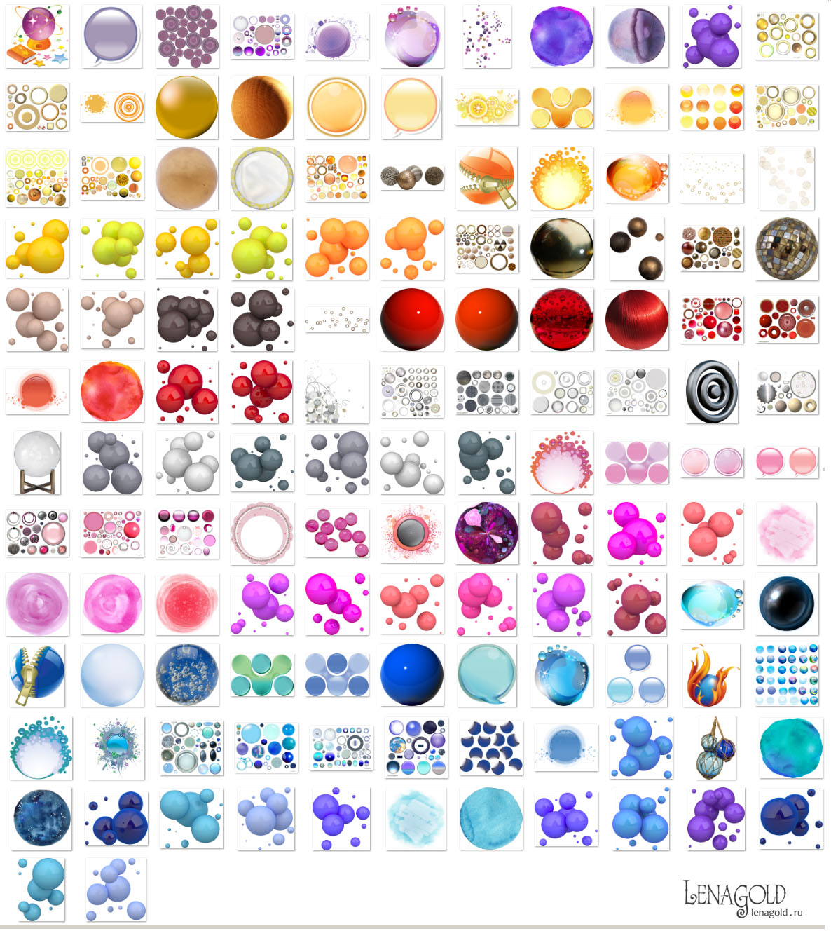 Шары и круги - 2 Количество файлов - 112 Формат - PNG превью Скачать архив - 366 Mb |